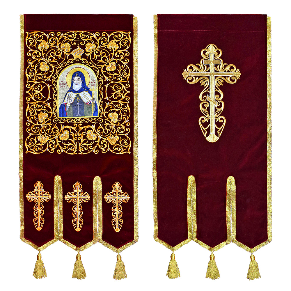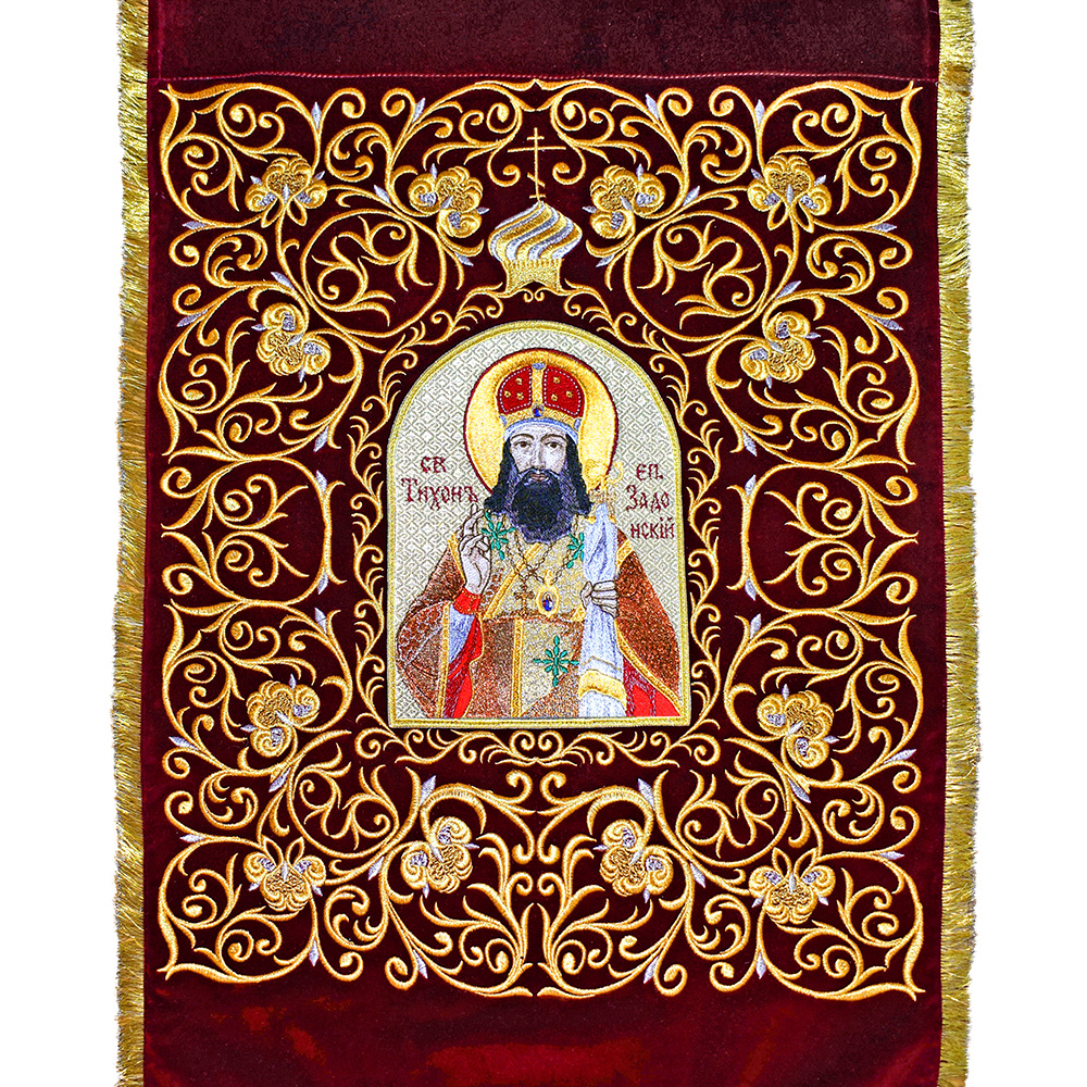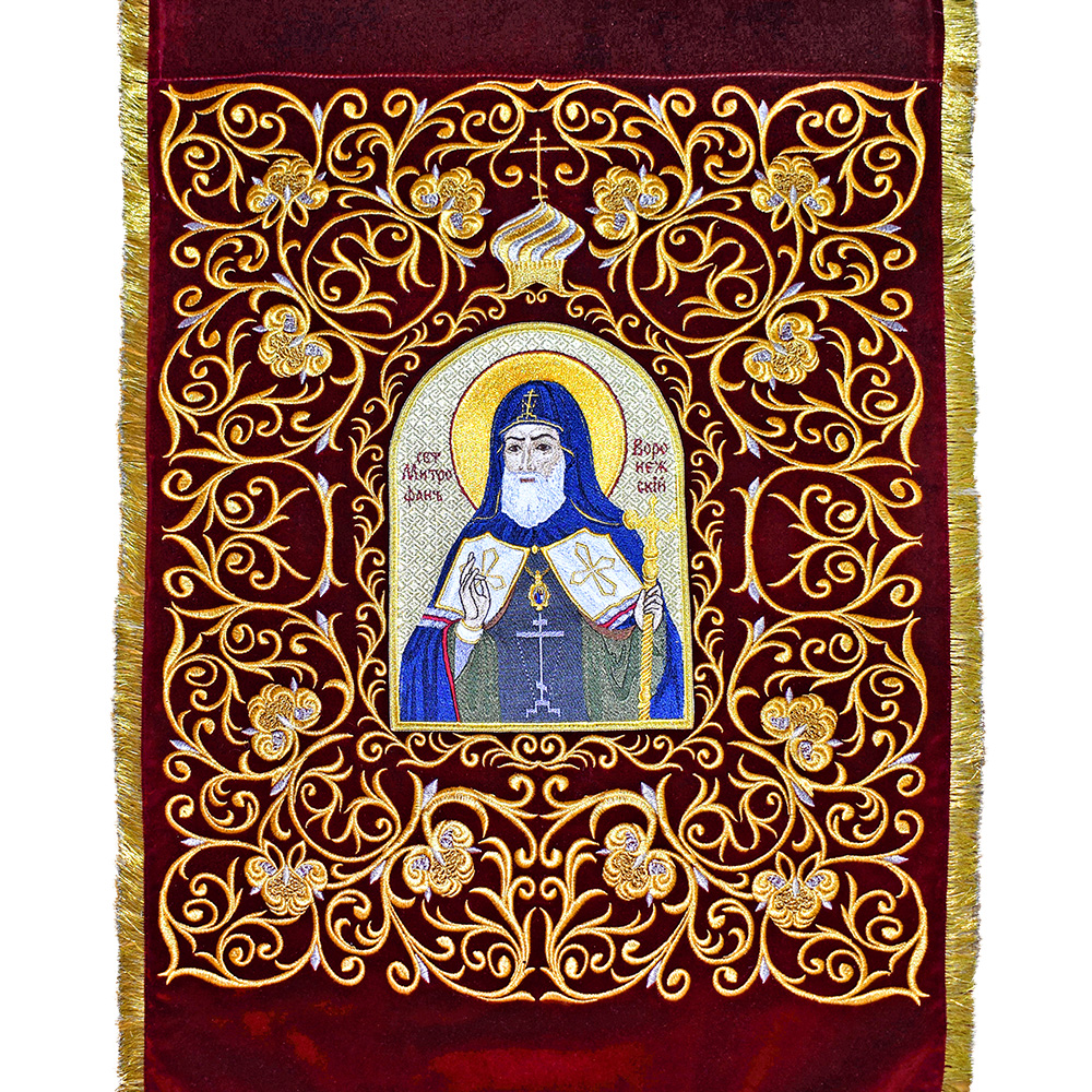 Хоругви вышитые с иконами святителя Митрофана Воронежского и святителя Тихона Задонского, комплект, цвет в ассортименте.