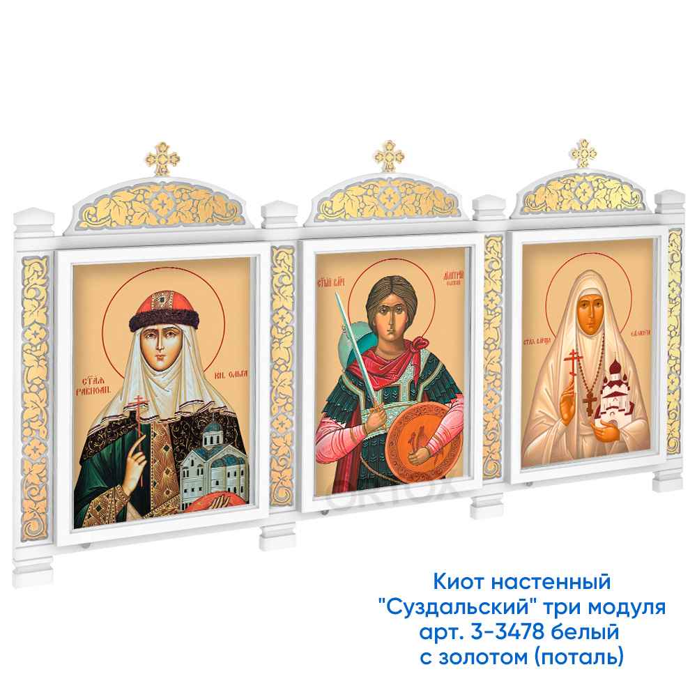 Киот настенный "Суздальский" белый с золотом (патина), три модуля