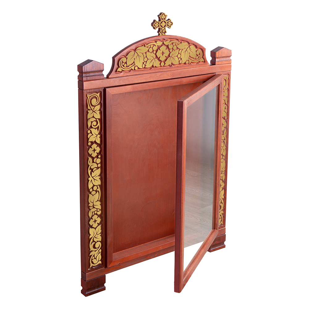 Настенный киот из дерева с рельефной резьбой - достойное оформление храмовых икон.