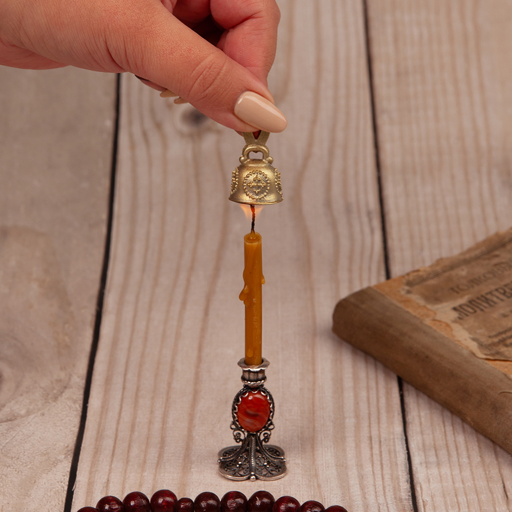 Колпачок для тушения свечей отлит из металлического сплава. Он позволяет погасить свечу на церковном подсвечнике удобно и безопасно. Благодаря небольшому размеру, колпачок для тушения свечей можно носить с собой и применять как в храме, так и дома.
