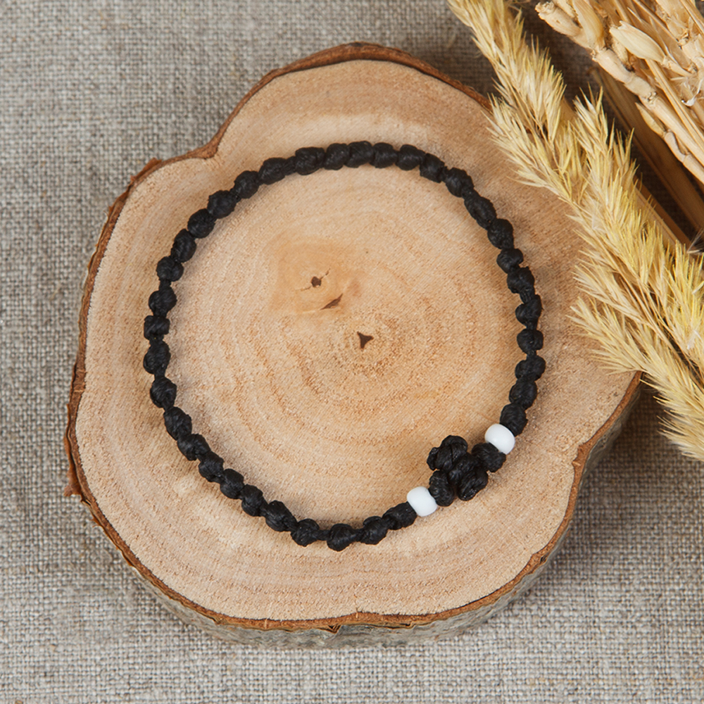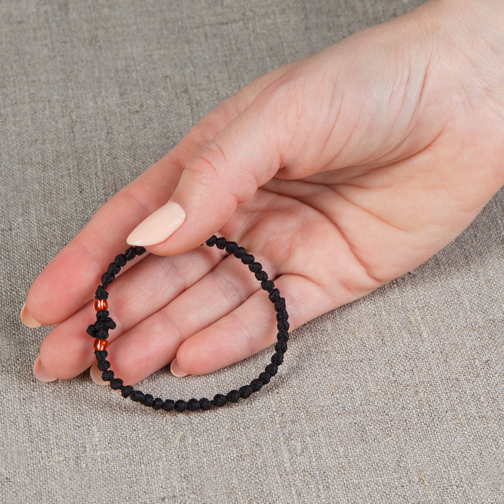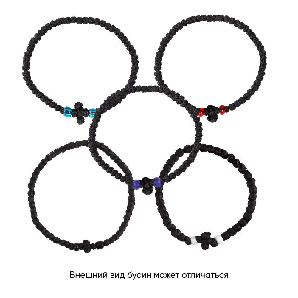 Браслет плетеный (комбоскини) с пластиковыми бусинами, черный №1