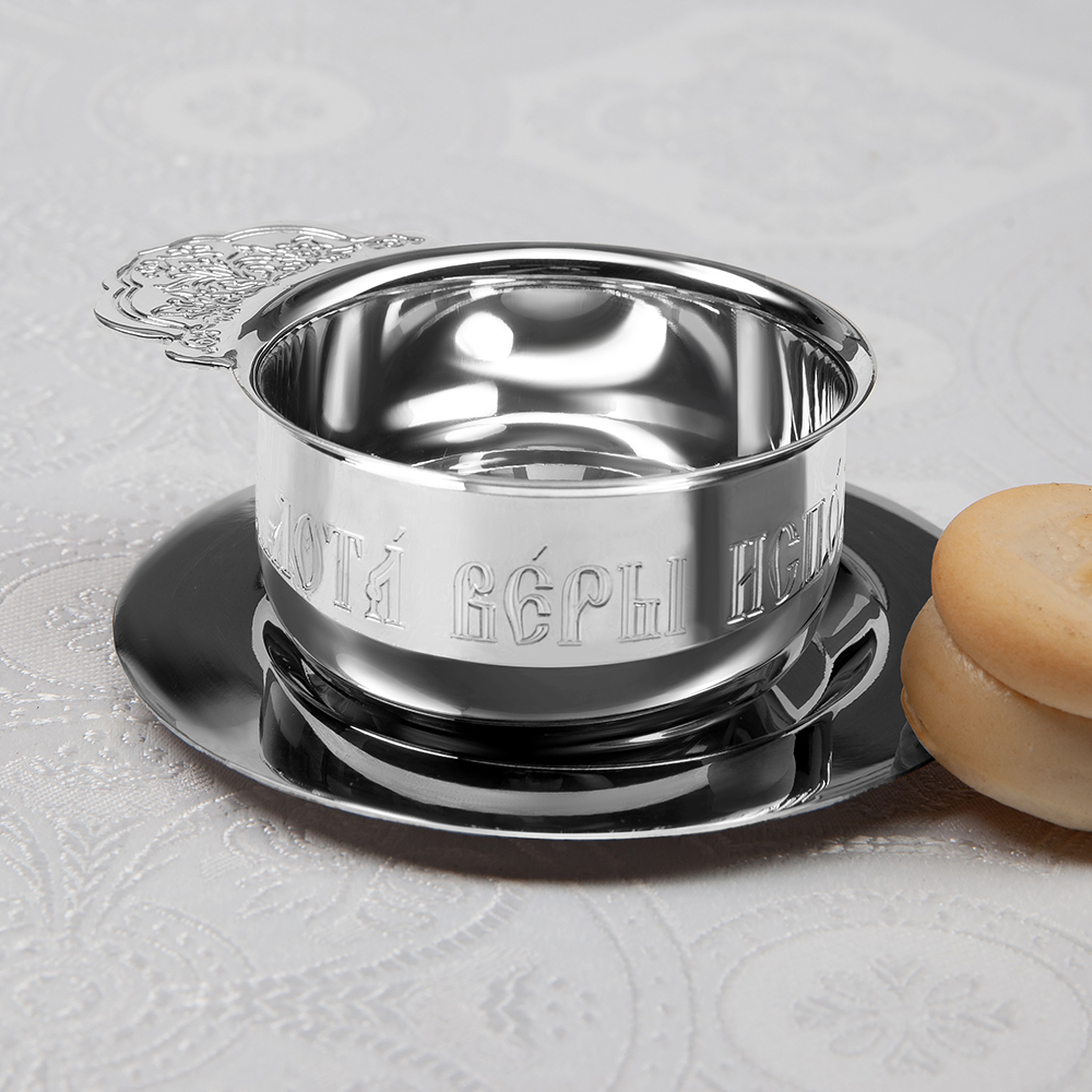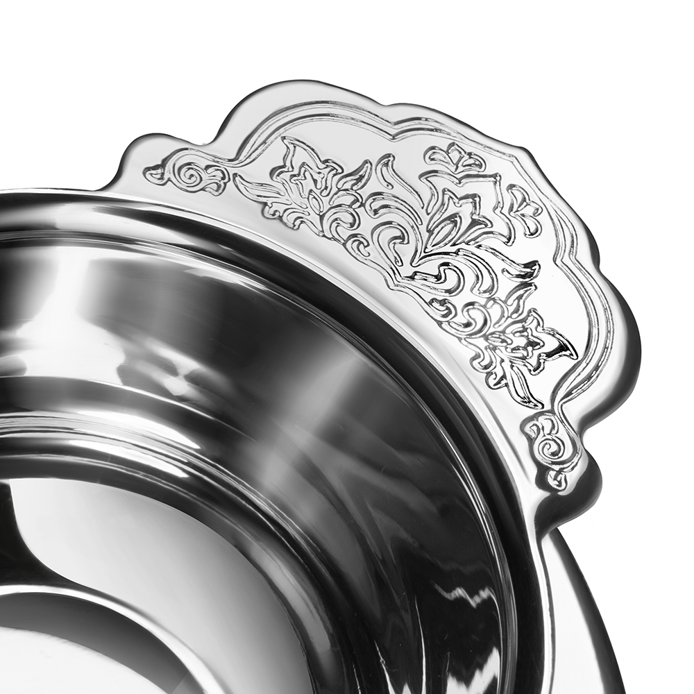Ковш изготовлен из ювелирного сплава и покрыт тонким слоем серебра, нанесенным гальваническим способом. Такая технология гарантирует неизменный внешний вид изделия на очень длительный период времени и простоту в уходе. Ручка очень удобная, с ребром жесткости.