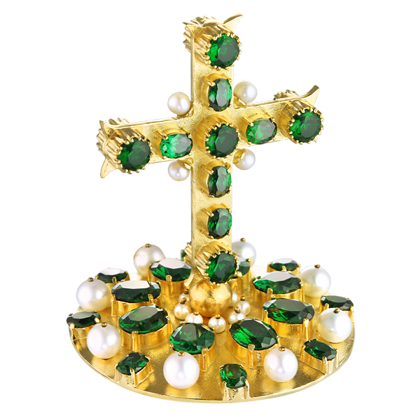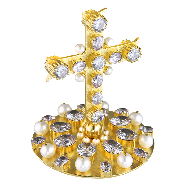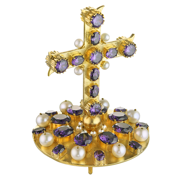 Крест на митру №5, из ювелирного сплава в позолоте с камнями