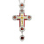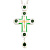 Наперсный крест лаконичной формы изготовлен из серебряного сплава. Его центральную часть занимает цветное изображение Распятия. Концы перекладин дополняют декоративные детали круглой формы с вставками из цветных фианитов. Такие же камни украшают корону в верхней части и круглую подвеску. В комплекте предлагается прочная серебряная цепь для ношения креста.