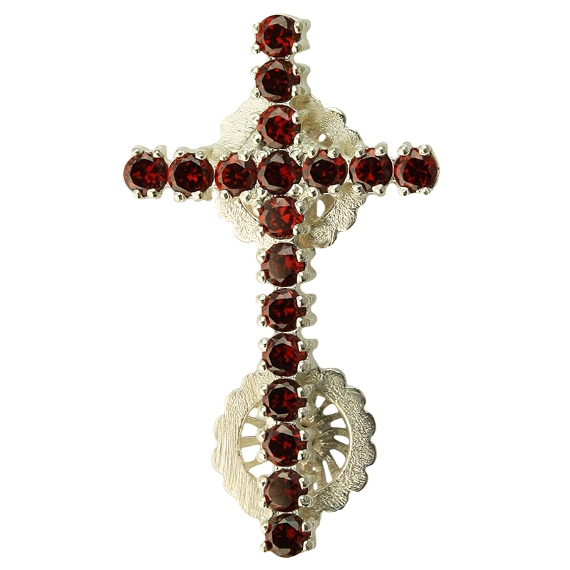 Крест на клобук изготовлен из серебра 925 пробы. Камни закреплены вручную специально подобранным способом закрепки, который подчеркивает красоту камня и гарантирует надежную степень крепления. Цвет вставок может быть выбран по Вашему желанию. Крест практичен и удобен в использовании. По желанию покупателя крест может быть упакован в презентабельную кожвиниловую упаковку.