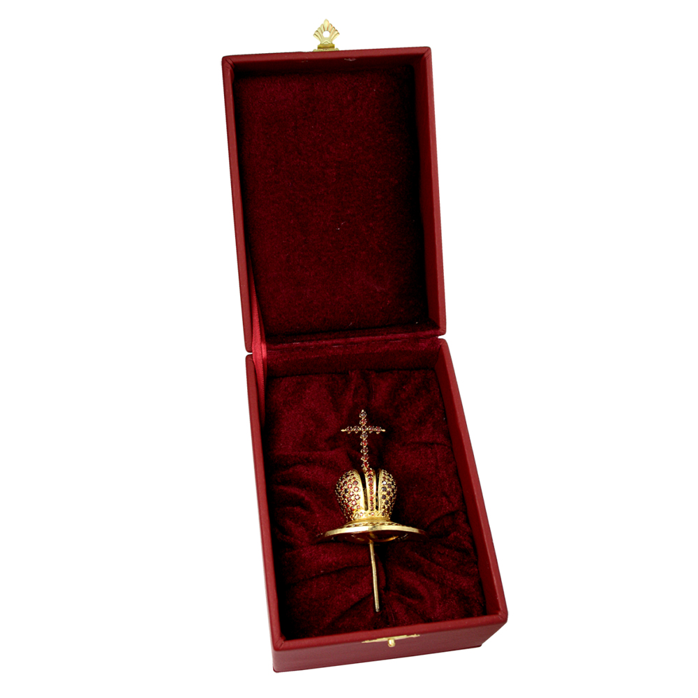 Крест на митру изготовлен из ювелирного сплава и покрыт тонким слоем золота гальваническим способом. Гальваническое золочение гарантирует неизменный вид изделия на очень длительный срок и простоту в уходе. Крест декорирован вставками фианитов отличного качества ручной закрепки. Изделие упаковано в презентабельную кожвиниловую упаковку с бархатным ложементом.
