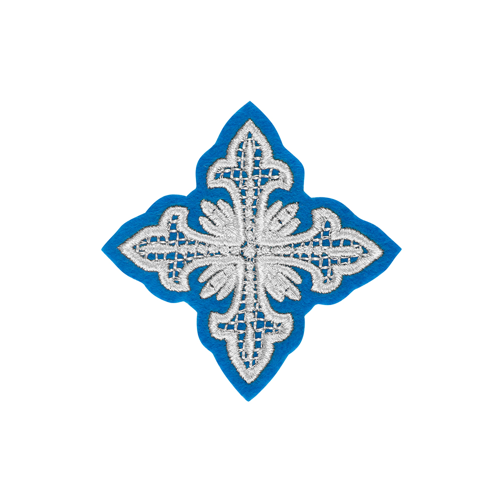 Крест на облачение вышитый пришивной голубой, серебряная нить