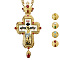 Наперсный крест изготовлен из высококачественного ювелирного сплава, устойчивого к неблагоприятному внешнему воздействию. Защитный слой позолоты, нанесенный гальваническим методом, предотвращает потемнение металла и придает изделию приятный блеск. Центральную часть креста занимает изображение Распятия, выполненное методом высокоточной цветной печати. В качестве дополнительных декоративных элементов используются вставки из фианитов глухой закрепки. Этот способ обеспечивает надежную посадку камня, удерживая его ободком металла по всему периметру.