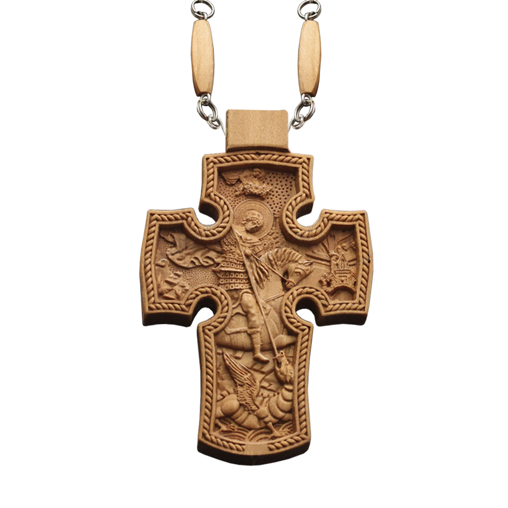 Крест наперсный "Наградной" деревянный светлый резной, с цепью, высота 10 см