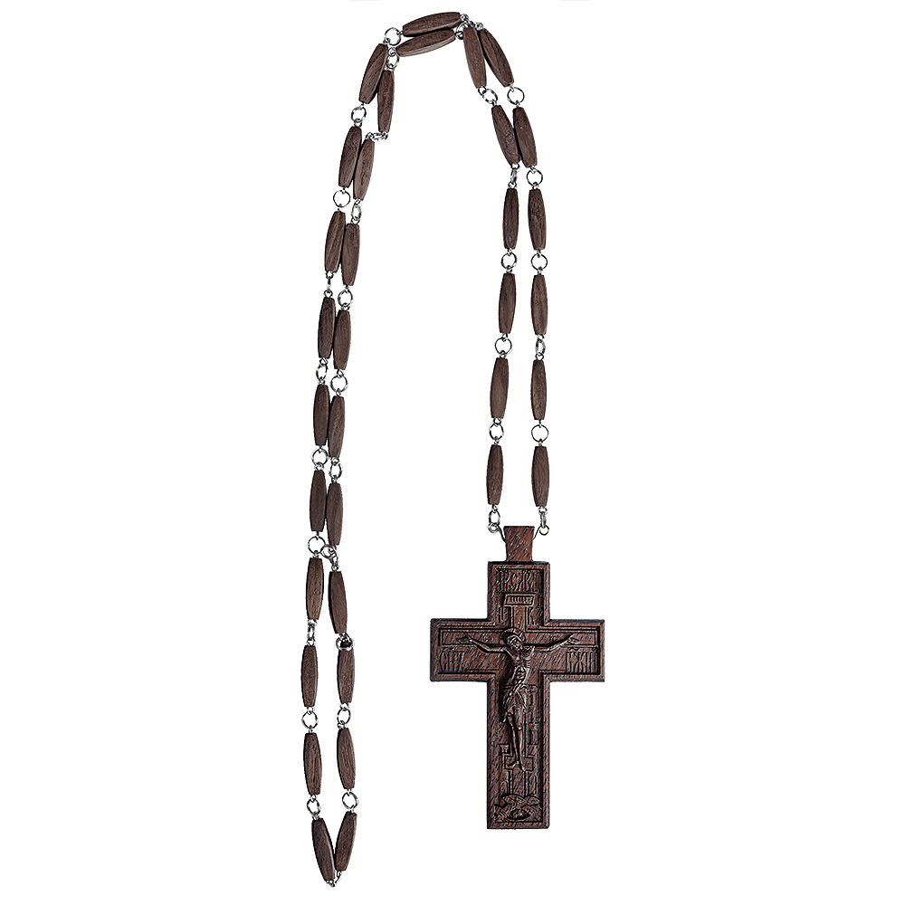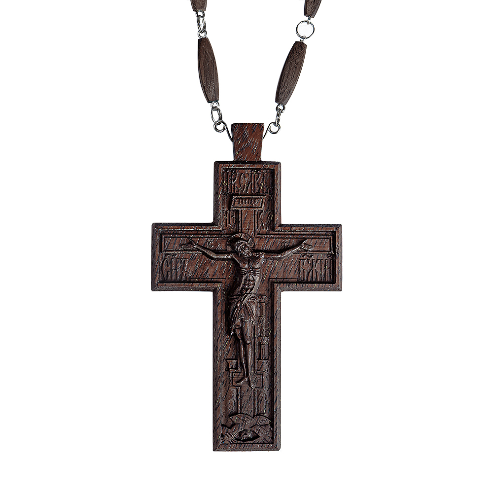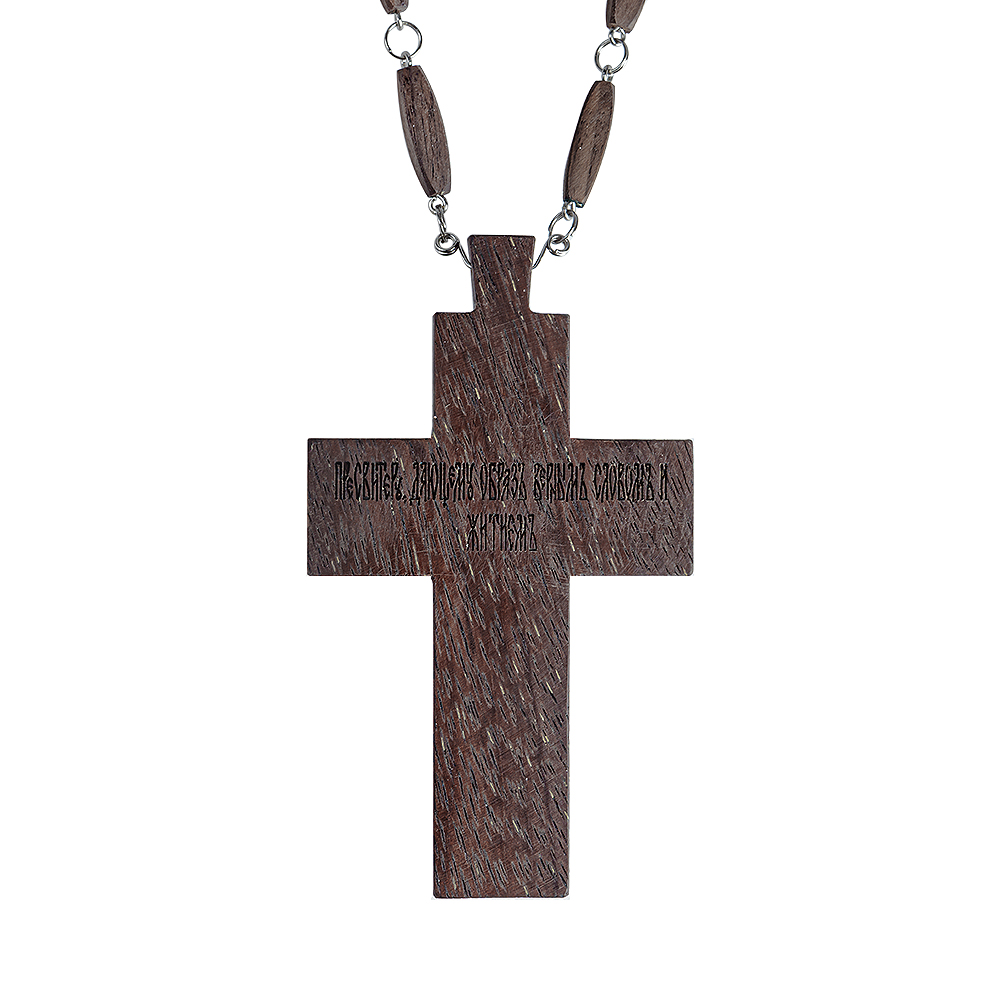 Крест наперсный протоиерейский деревянный темный, с цепью, резной, 7х12 см