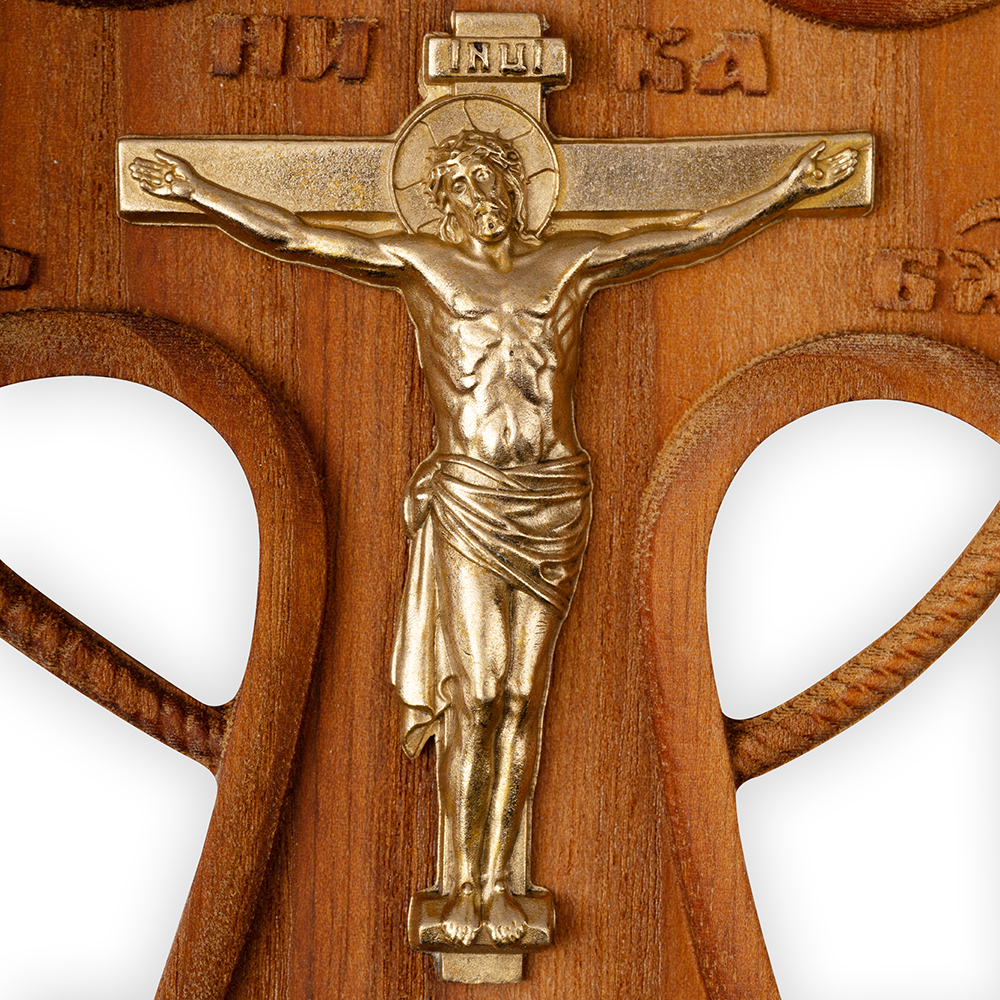 Постригальный крест из дерева с распятием из латуни.