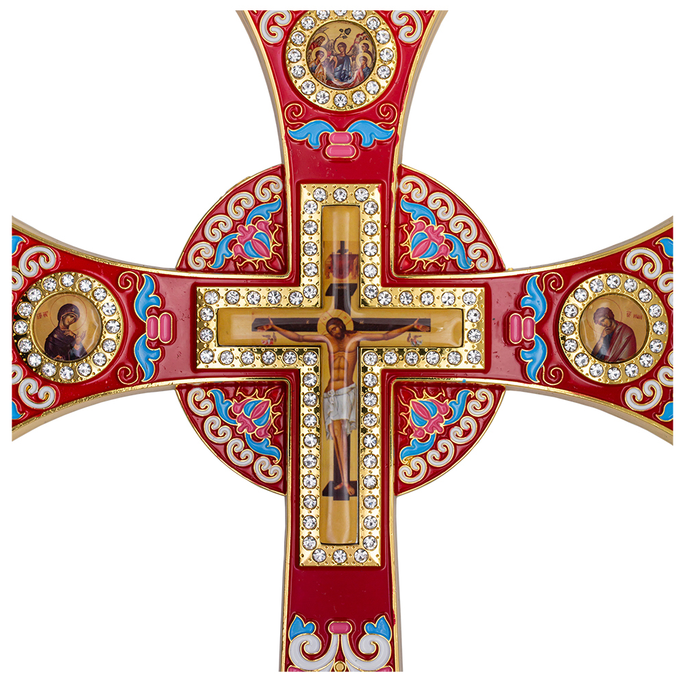 Крест напрестольный / требный четырехконечный, цинковый сплав, красная эмаль, 17х29 см фото 8