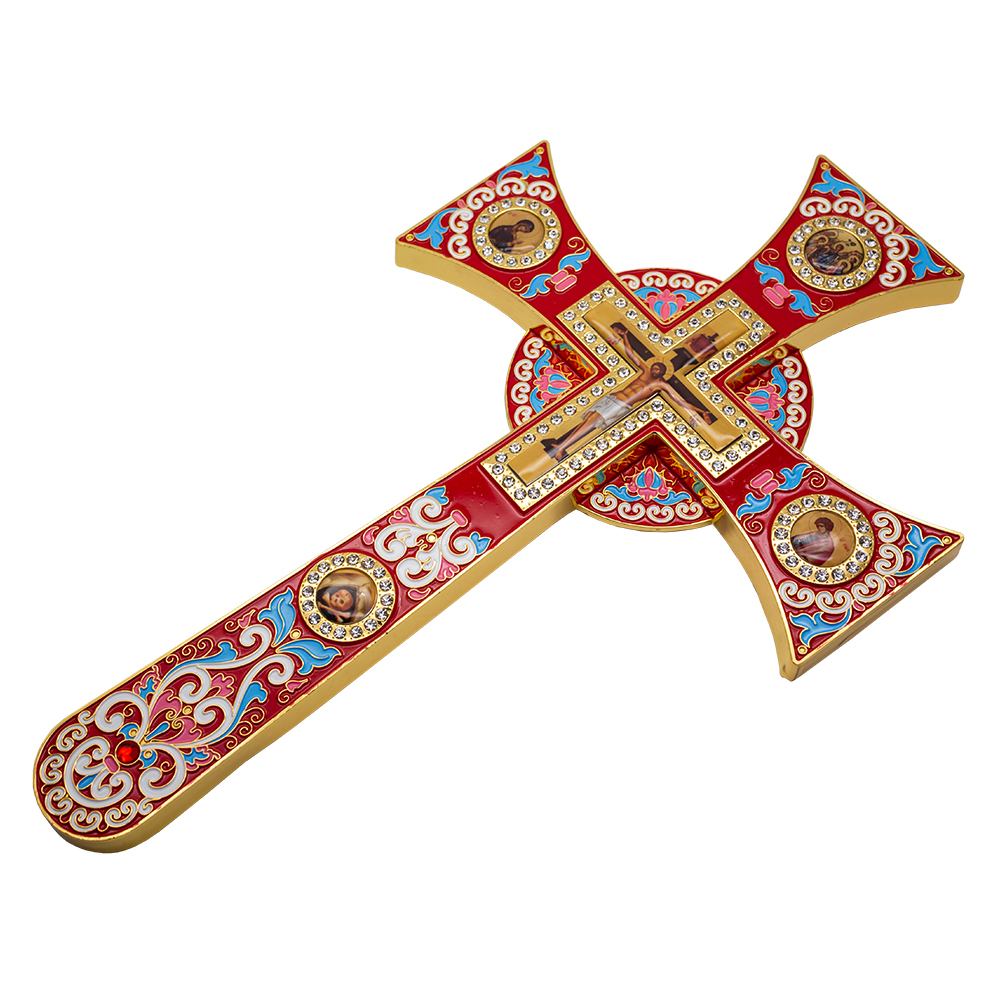 Крест напрестольный / требный четырехконечный, цинковый сплав, красная эмаль, 17х29 см фото 4