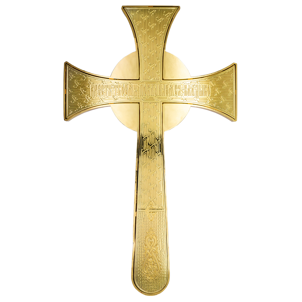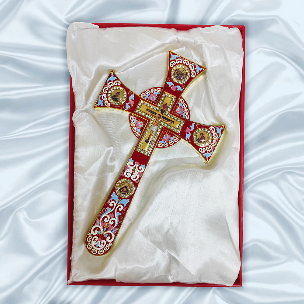Крест напрестольный / требный четырехконечный, цинковый сплав, красная эмаль, 17х29 см