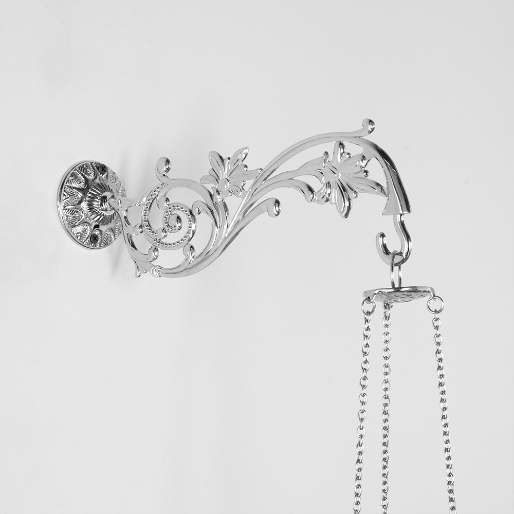 Кронштейн для лампад большой, цинковый сплав, цвет "под серебро", 32х10,5 см