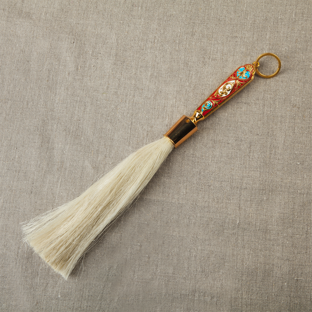 Кропило с ручкой из цинкового сплава с цветной эмалью и искусственным ворсом.