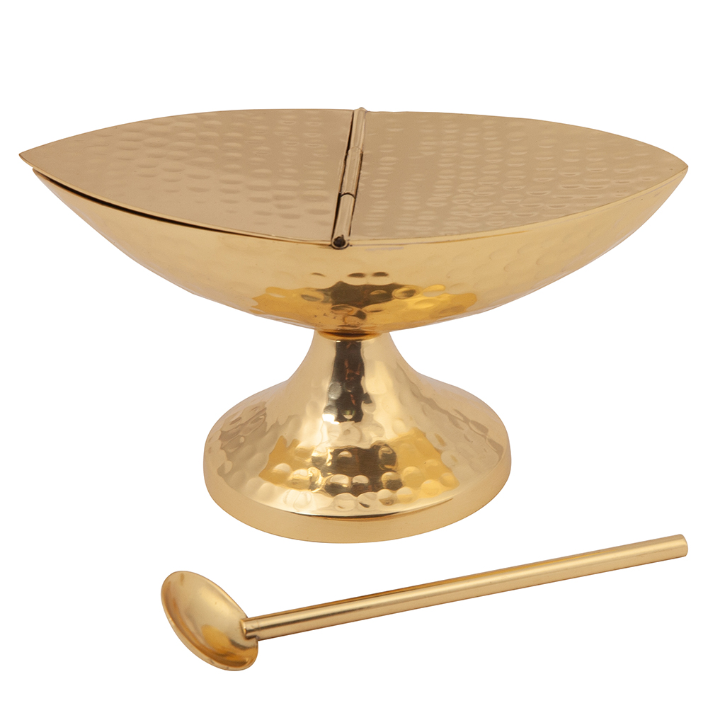 Ладаница с ложкой латунные, 14х7,2х7 см