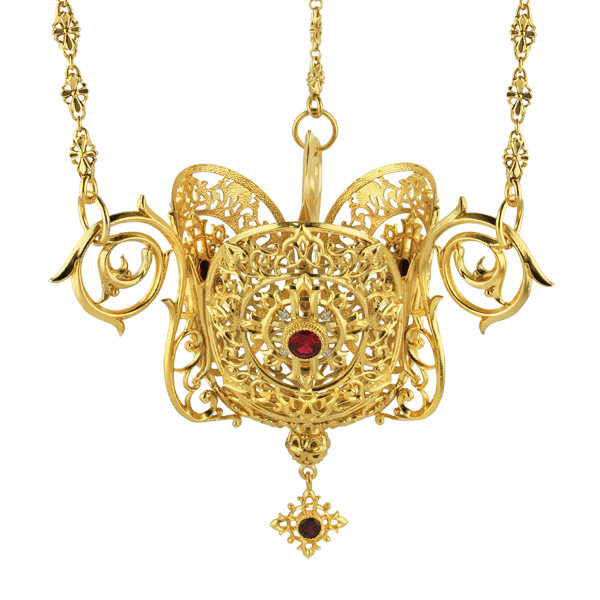 Лампада подвесная из ювелирного сплава в позолоте с камнями