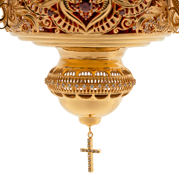Лампада подвесная из ювелирного сплава в позолоте с камнями, 16х19 см фото 7