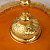 Напрестольная лампада в форме распустившегося цветка на круглой широкой опоре.