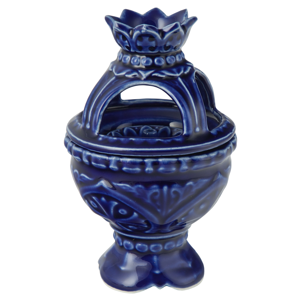 Керамическая лампада дополнит домашний иконостас и обеспечит условия для безопасного горения фитиля при совершении молитвенного правила. Изделие состоит из трех частей – широкой чаши для масла на устойчивой опоре из четырех лепестков, крышки с крупными отверстиями и декоративным цветком, а также держателя для фитиля, который устанавливают в чашу после заливания лампадного масла. Все элементы украшены объемным декором, дополнительную привлекательность которому придает цветная глазурь.