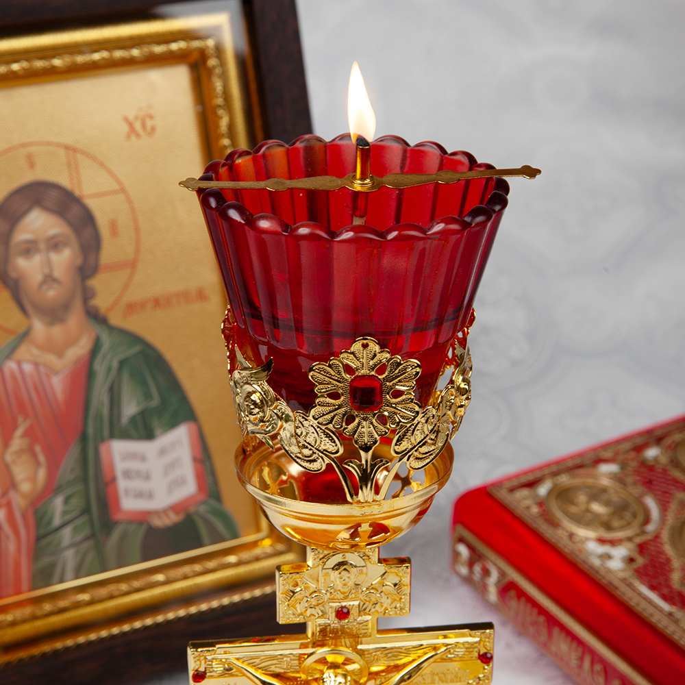 Лампада настольная, цинковый сплав, красные камни, 8х26 см фото 5