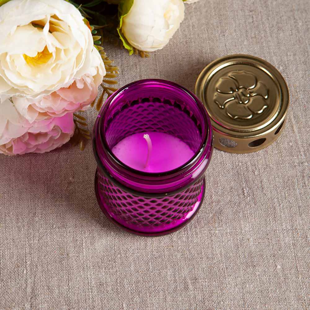 Неугасимая лампада с заливной свечой изготовлена из прозрачного стекла. Изделие закрывает крышка с перфорацией, с помощью которой удается поддерживать приток воздуха для горения свечи. На дно емкости залит слой парафина со вставленным фитилем. Прочный корпус не мутнеет от повышенной температуры, не деформируется и не растрескивается. Приблизительное время горения свечи – 6-8 часов. Неугасимая лампада возжигается перед иконами, может использоваться во время крестных ходов, при совершении Таинств или богослужений.