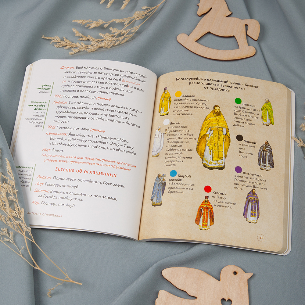 Эта книга поможет и взрослым, и детям, которые пришли в храм на главное православное богослужение — литургию. По книге можно следить за ходом службы и тут же получать необходимые разъяснения о том, что поет хор, что происходит в алтаре, как переводятся церковнославянские слова.