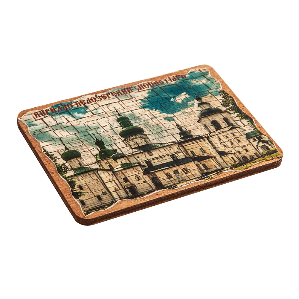 Магнит "Кирилло-Белозерский монастырь, Кириллов" на дереве под старину, 8х6 см