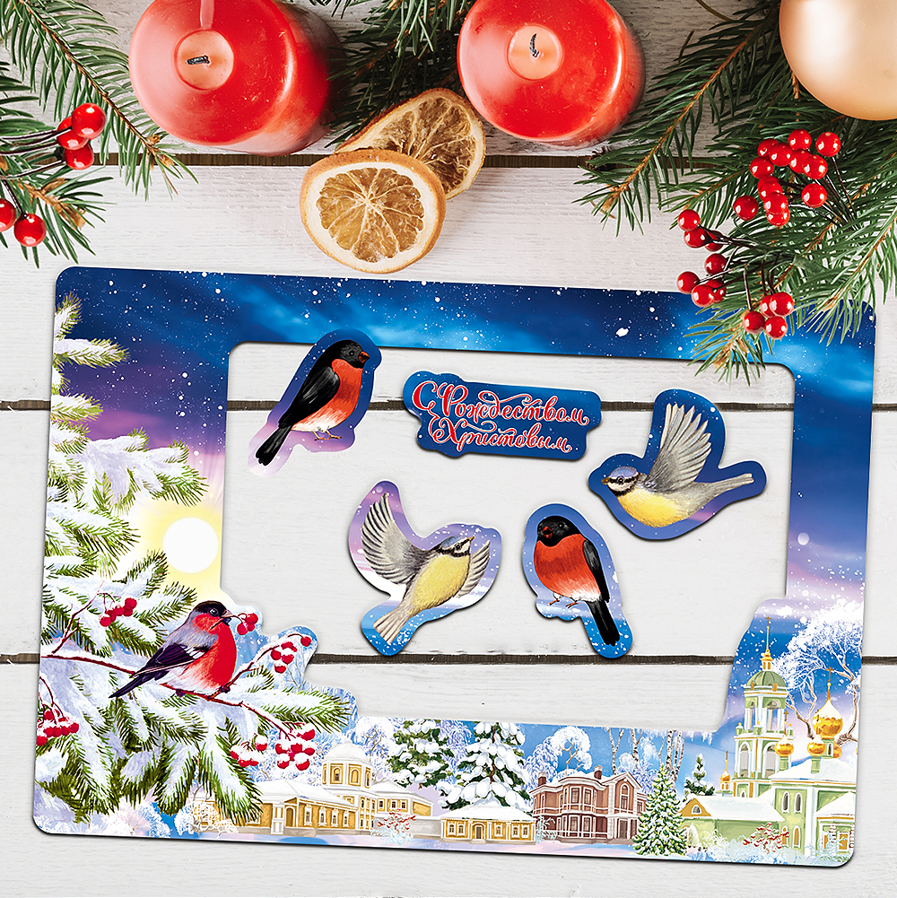 Магнитная фоторамка "Снегири", 21х14,5 см