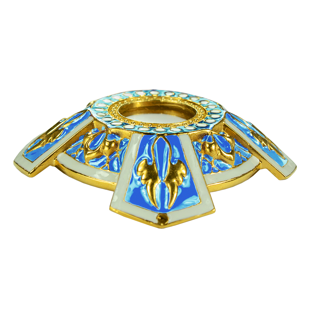 Мощевик накладной "Эмалевый крест" из ювелирного сплава в позолоте, голубая и белая эмаль, Ø 65/18 м