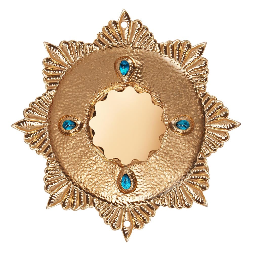 Мощевик накладной из ювелирного сплава в позолоте с синей эмалью и фианитами, Ø 63/16 мм