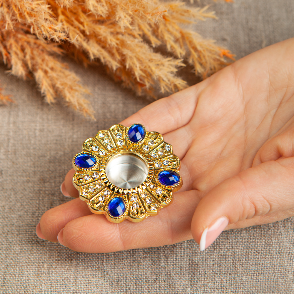Круглый врезной мощевик изготовлен из качественного цинкового сплава. Его поверхность разделена на грани, украшенные вставками из цветных декоративных камней. В продаже представлены модели со вставками разного цвета, выберите и укажите желаемый вариант при оформлении заказа.