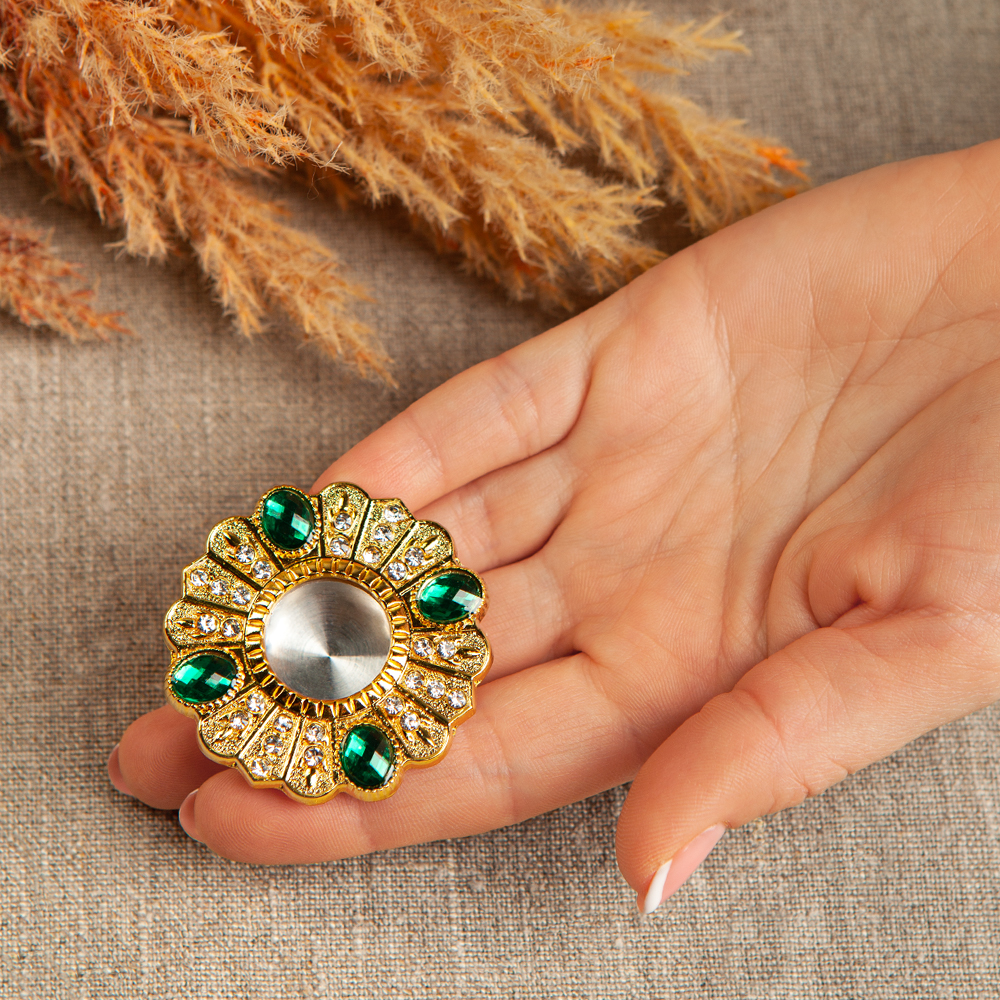 Врезной мощевик круглой формы из цинкового сплава с декоративными вставками.