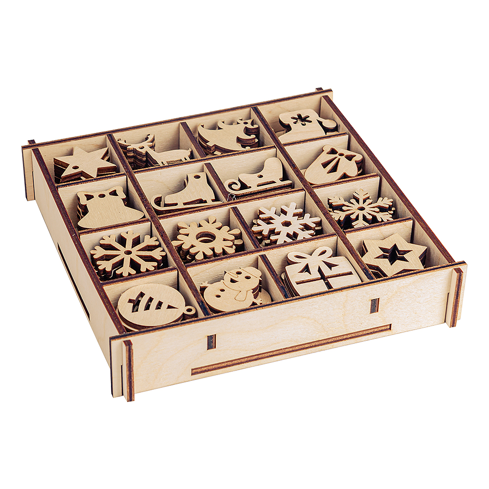 Набор деревянных заготовок для творчества "Новогодний", 96 шт. в коробке.