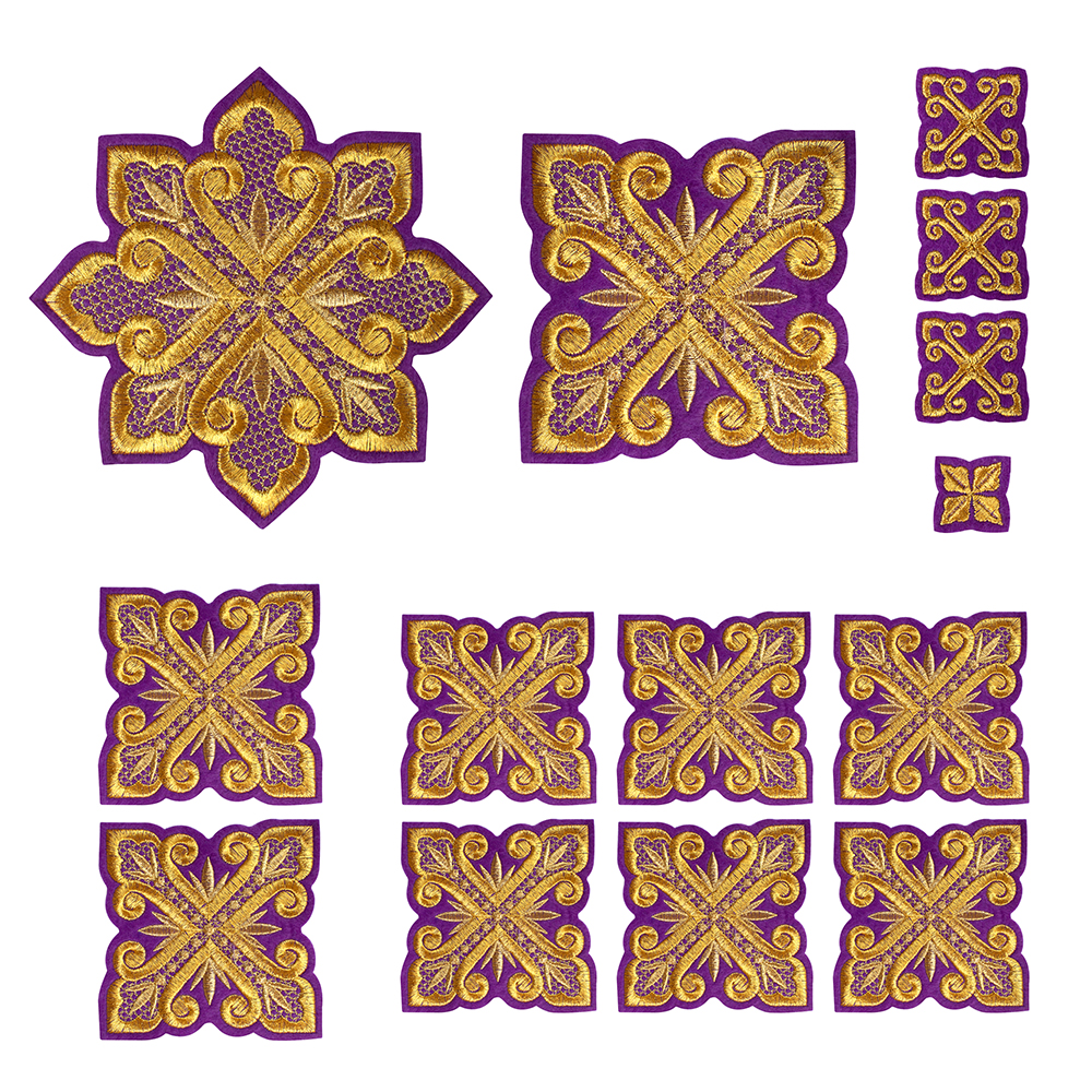 Накладные вышитые кресты для облачений в цвете "фиолетовый с золотом".