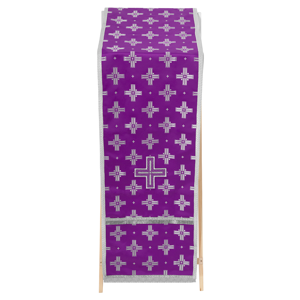 Перекидная накидка на аналой из шелка «Святительский» в цвете "фиолетовый с серебром".