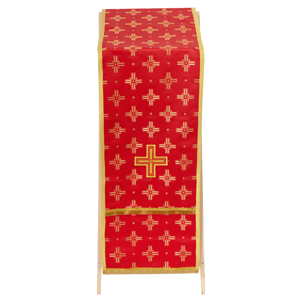 Перекидная накидка на аналой из шелка «Святительский» в цвете "красный с золотом".