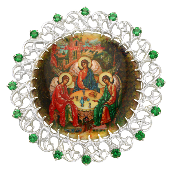 Накладка на митру "Троица" из ювелирного сплава в серебрении, с фианитами.