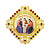 Образ выполнен по специальной технологии нанесения цветного изображения на латунную основу и покрыт составом, предохраняющим его от механических повреждений и воздействия света. Рамка изготовлена в виде орнамента на просвет и декорирована вставками фианитов отличного качества ручной закрепки.
