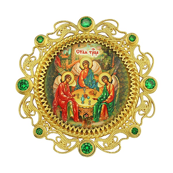 Накладка на митру "Троица" из ювелирного сплава в позолоте, с фианитами.