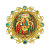 Образ выполнен по специальной технологии нанесения цветного изображения на латунную основу и покрыт составом, предохраняющим его от механических повреждений и воздействия света. Рамка изготовлена в виде орнамента на просвет и декорирована вставками фианитов отличного качества ручной закрепки.