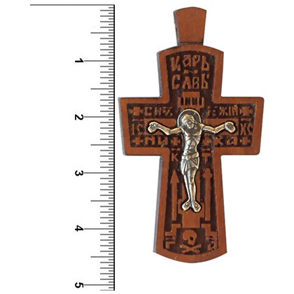 Нательный крестик сделан из благородного и твердого дерева - груши и пропитан натуральными маслами. Распятие изготовлено из мельхиора и покрыто серебрением.