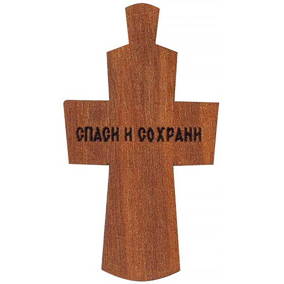 Нательный крест изготовлен из плотной древесины груши. В центральной части помещено распятие, чуть "утопленное" в деревянную основу. Фон заполнен рельефным узором, изготовленным методом лазерной резки. Ушко вырезано одновременно с деревянным основанием. Изделие обладает особой эстетичностью благодаря оригинальному сочетанию цвета и фактуры.