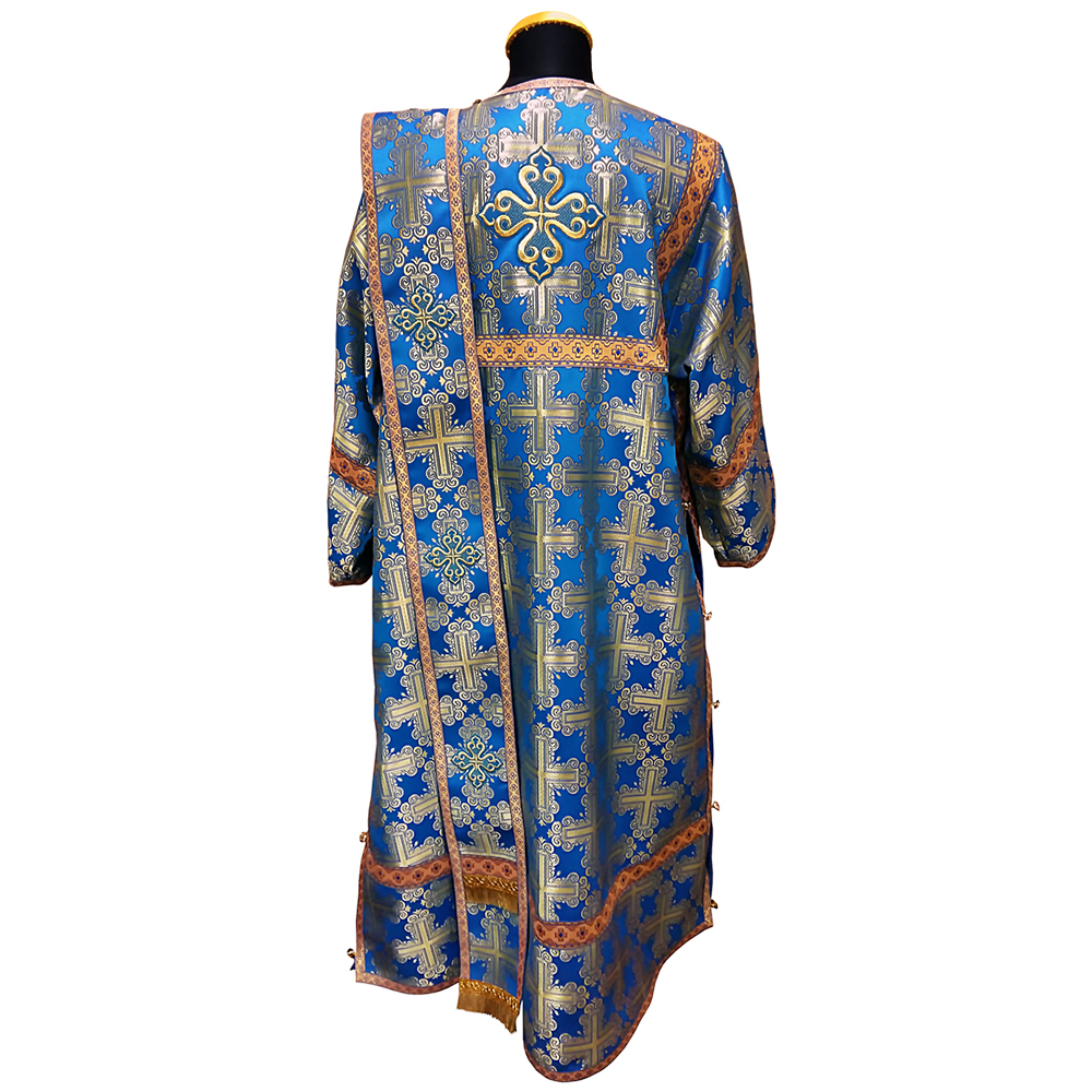 Облачение диаконское голубое, шелк, отделка цветной галун с рисунком