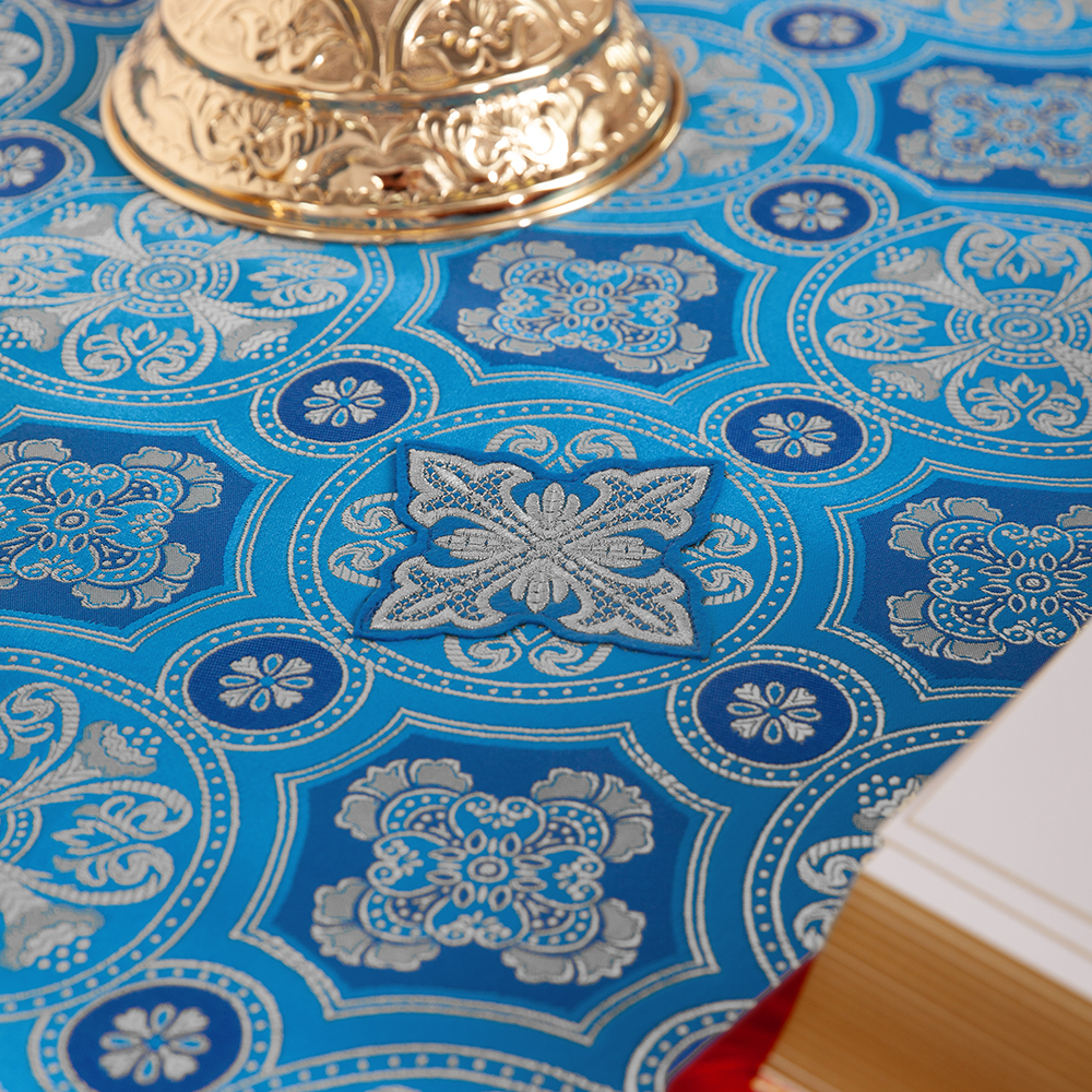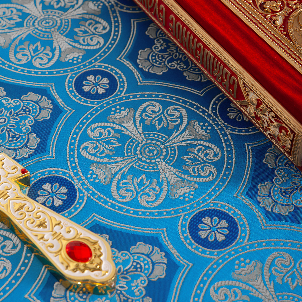 Облачение на престол с пеленой, шелк "Горненский", голубое с серебром