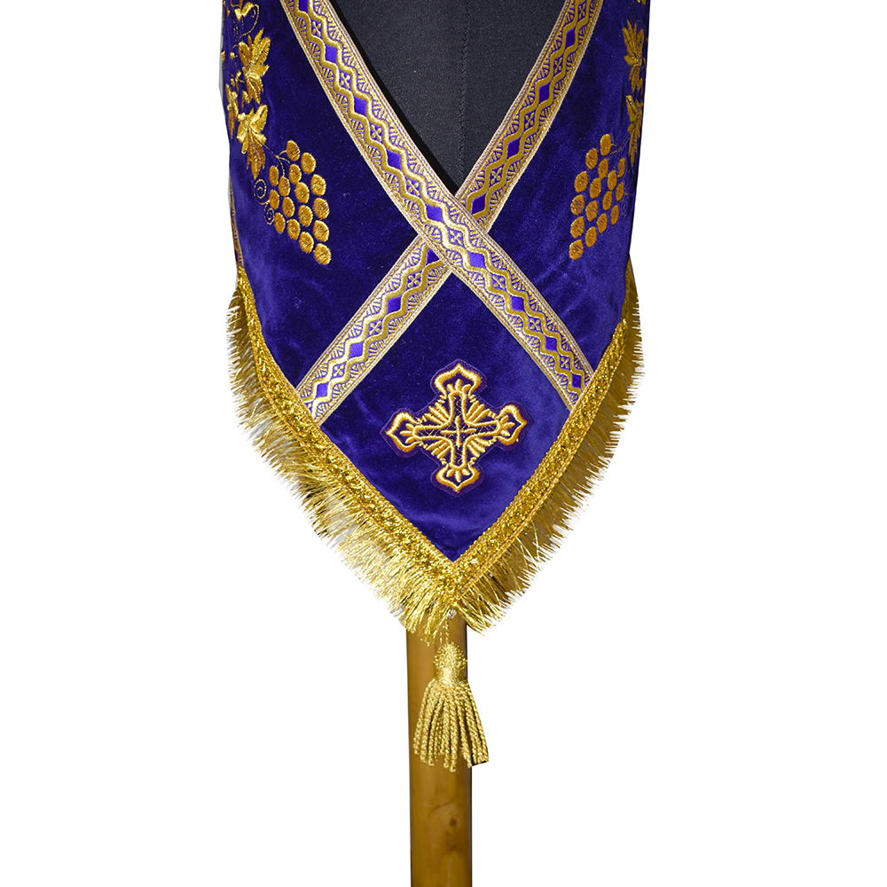 Для пошива изделия могут использоваться однотонный атласный шелк, бархат или парча "Оренбург". Протодиаконский орарь украшен вышивкой "Виноградная лоза" и "Свят", херувимами, цветным галуном по периметру и бахромой. Нашивные кресты выполнены с помощью машинной вышивки метанитом на замше. Предусмотрен пошив изделия из ткани любого цвета согласно принятой традиции изготовления богослужебных облачений для праздников и постных периодов года. При заказе необходимо указать рост, цвет ткани и индивидуальные пожелания.