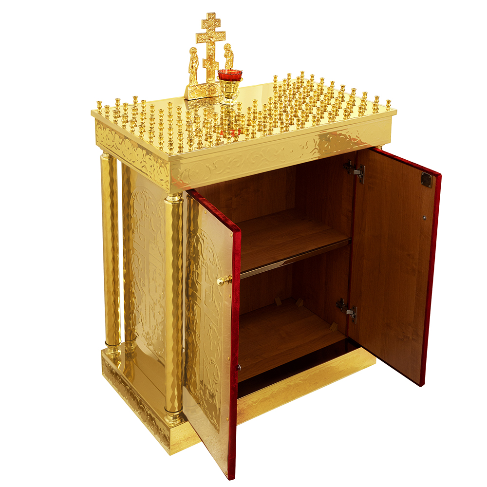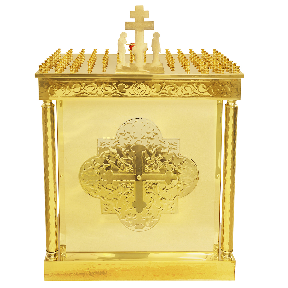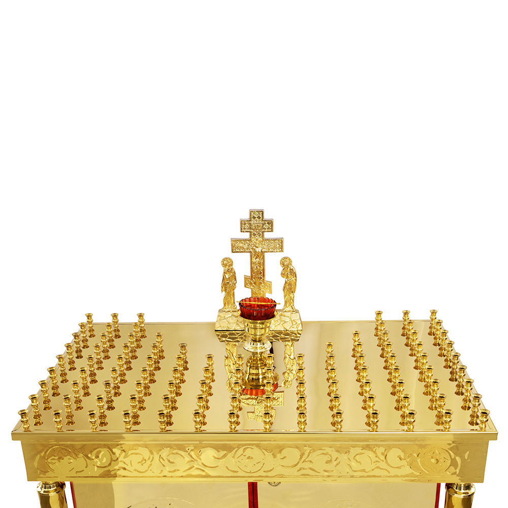 • Панихидный стол на 100 свечей "Иерусалимский", колонны, чеканка, 85х50х92 см Панихидный стол на 100 свечей "Иерусалимский", колонны, чеканка, 85х50х92 см