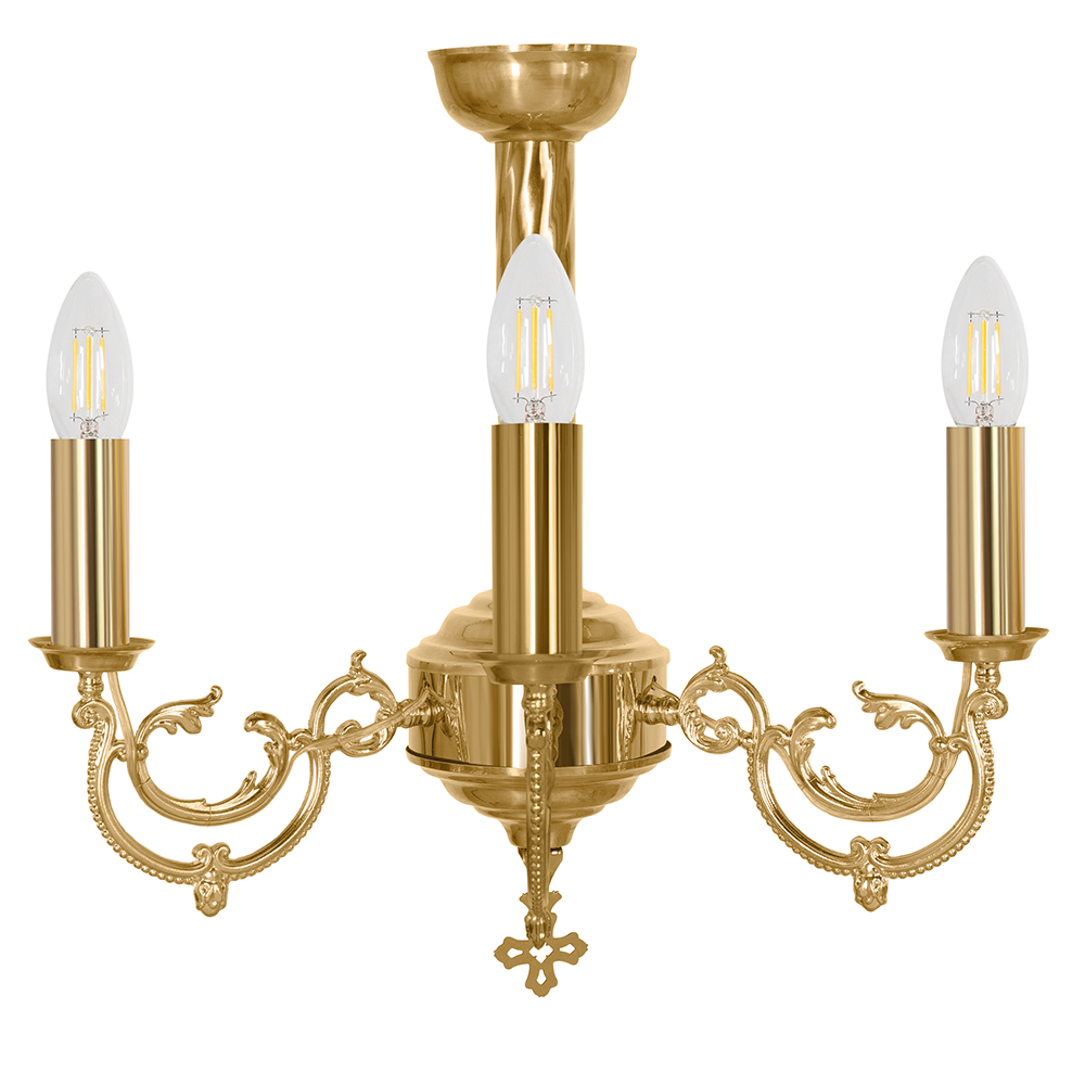 Малое паникадило на 3 свечи украсит помещение храма или бокового придела.