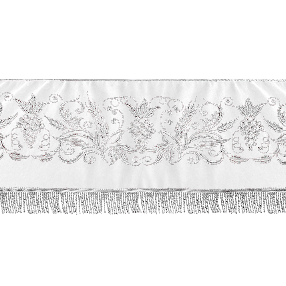 Пелена на престол из нескольких типов тканей с богатым декором в цвете "белый с серебром".